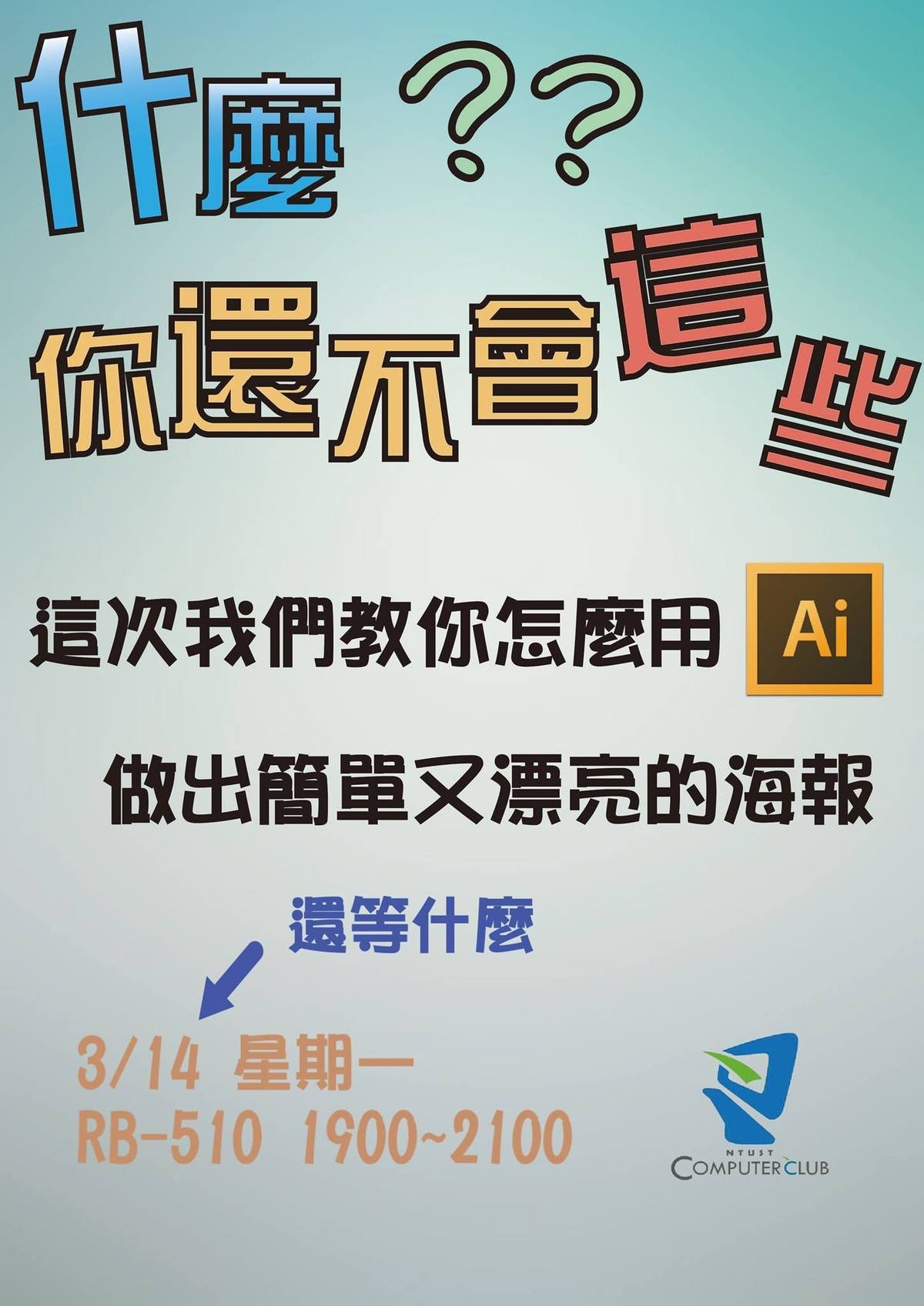 本活動的講師為台科大設計系的學生,講師會熱情的在電腦教室教導各位使用Adobe Illustrator,並且不收你一毛錢,這麼好的機會怎麼能錯過!?